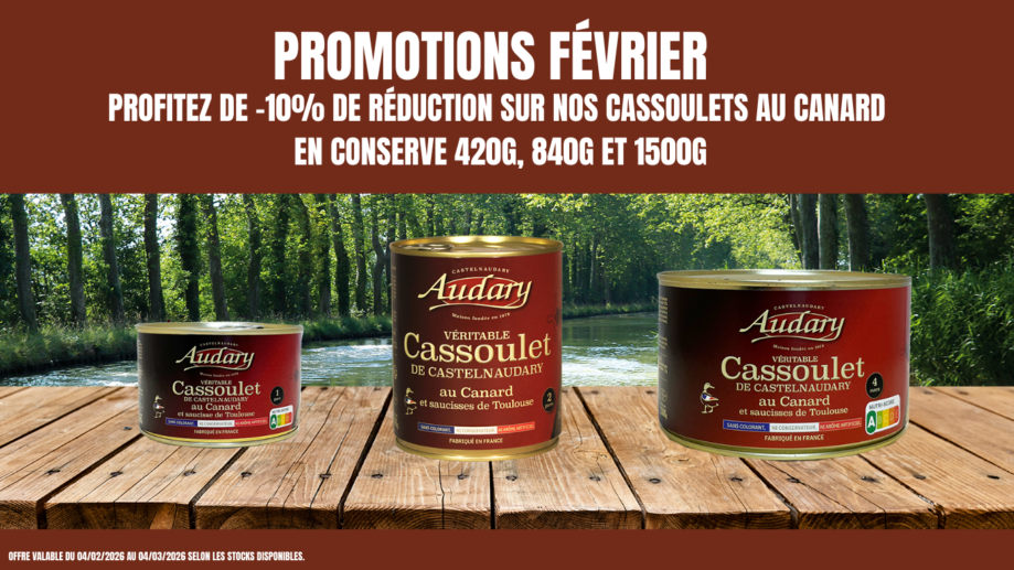 Cassoulets, confits, plats cuisinés, pâtés, jambonneaux et foie gras pour les amateurs de la gastronomie française.